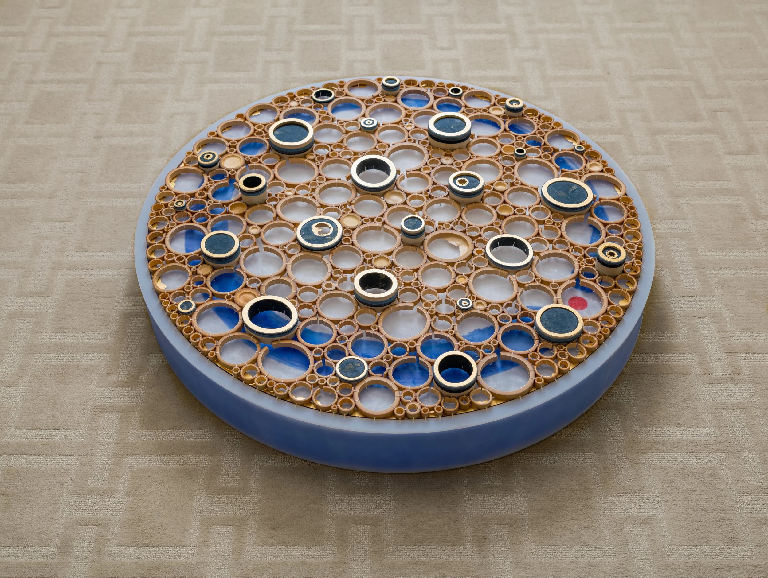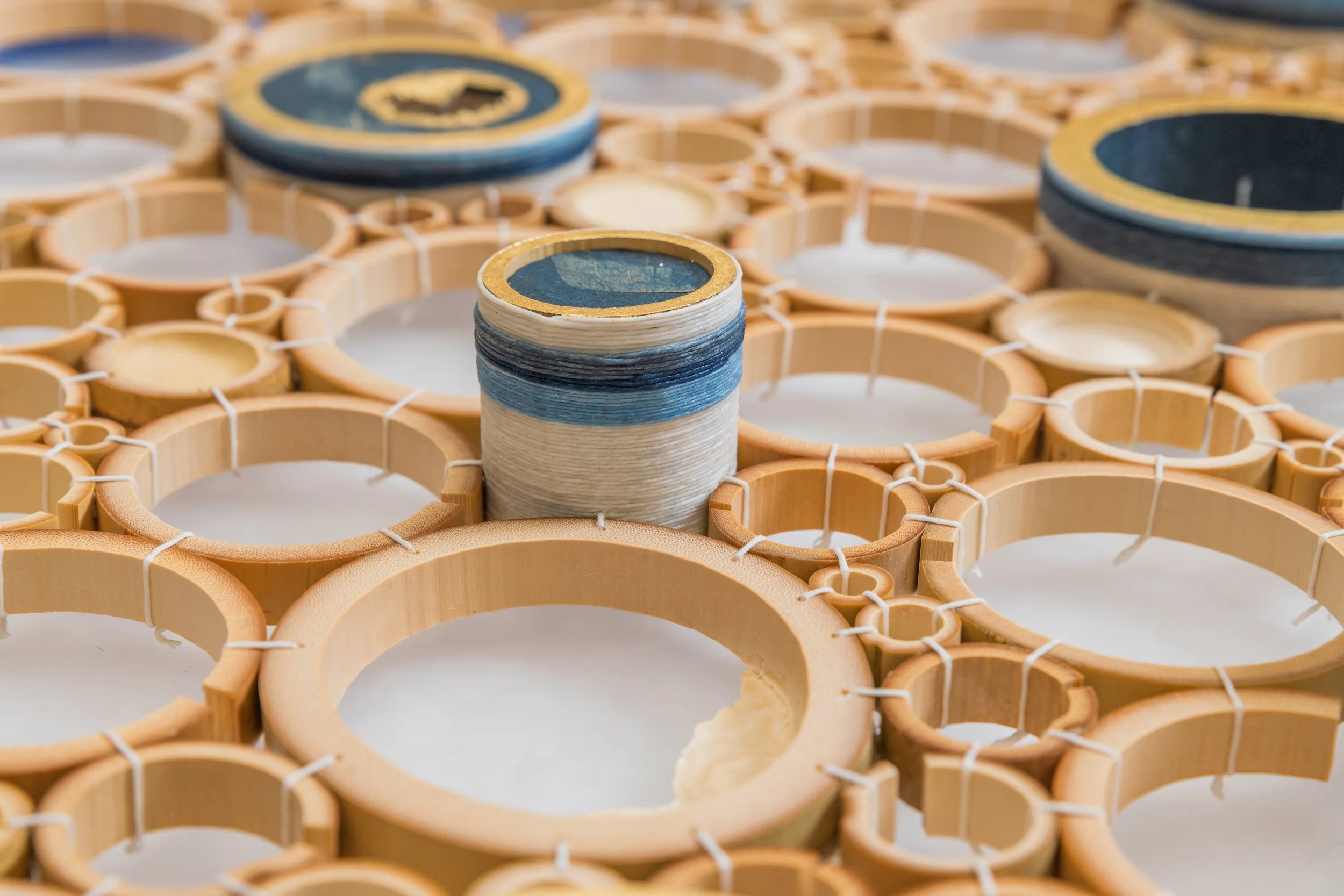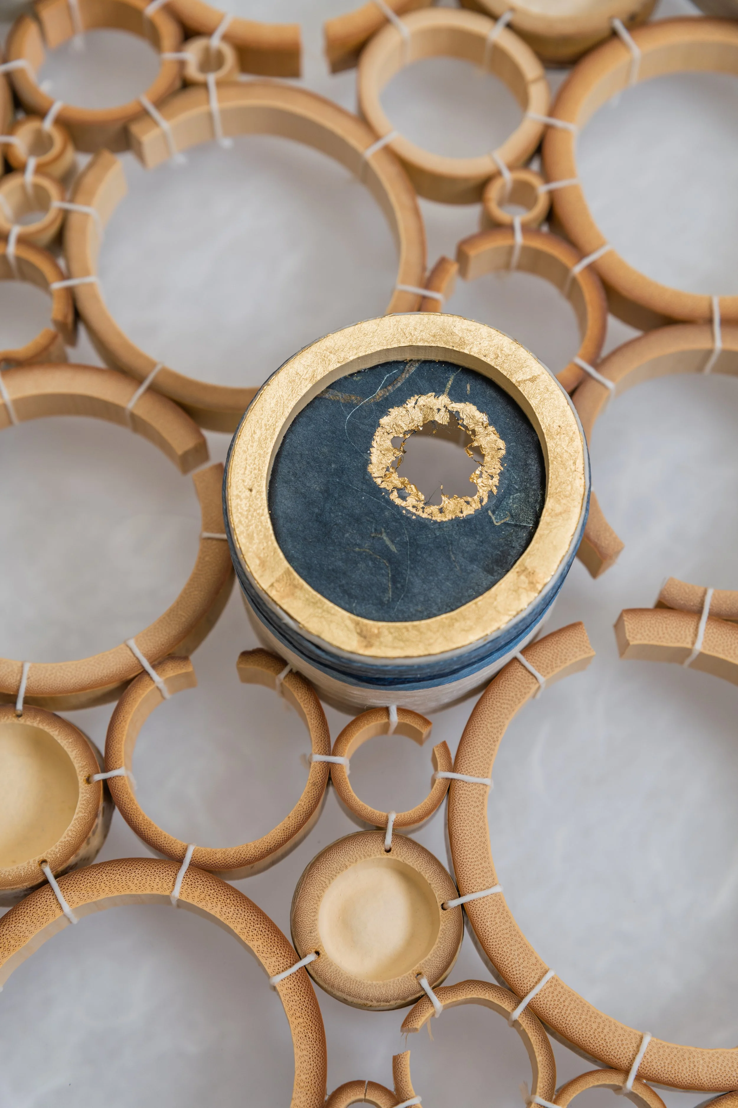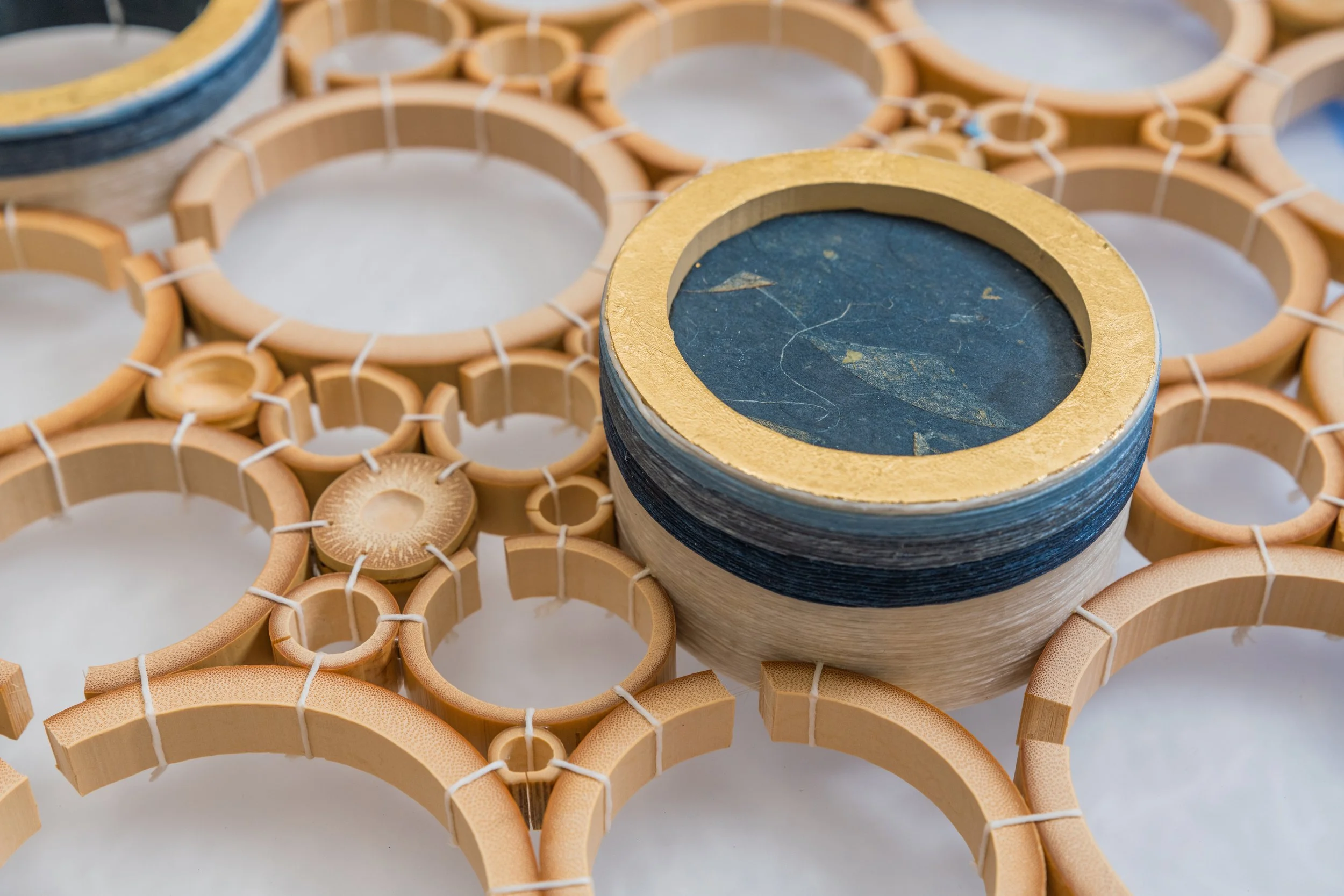 Crosscut bamboo, Irish waxed linen thread, Korean rice paper, Watercolor, Japanese acrylic rice paper, Basswood frame