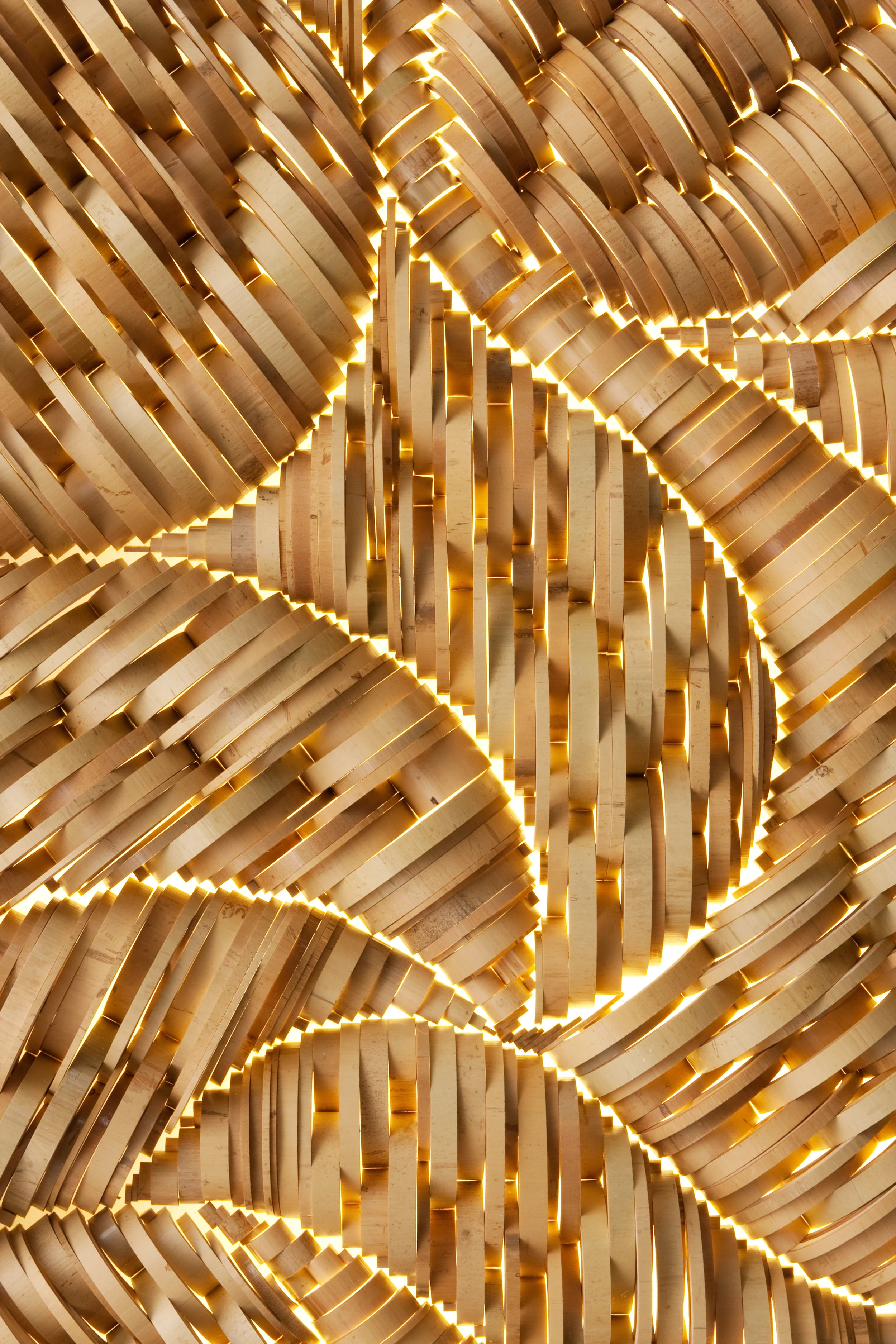 Crosscut bamboo, acrylic, wood, paint, LED lighting