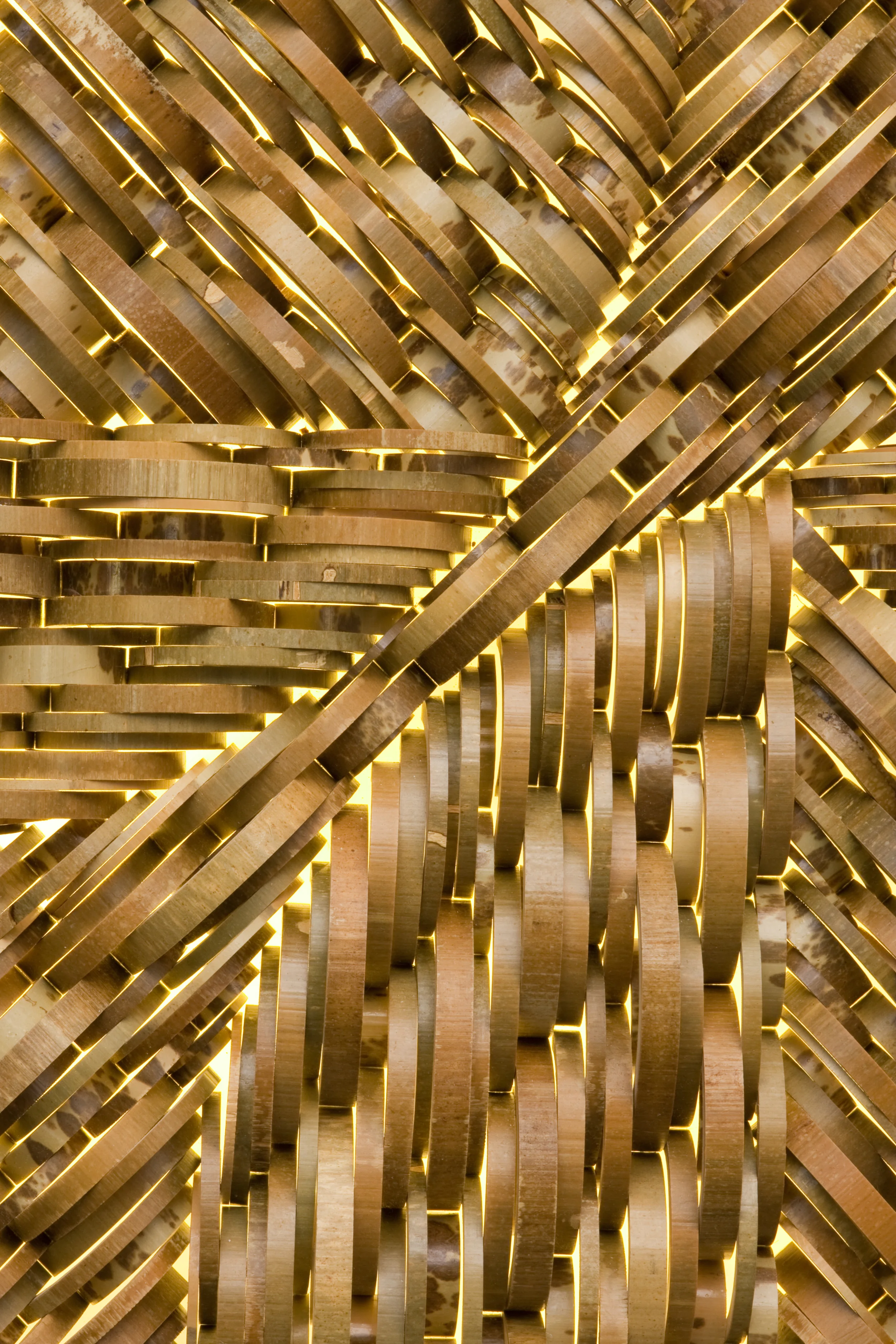 Crosscut green and leopard bamboo, acrylic, paint, wood, LED lightning