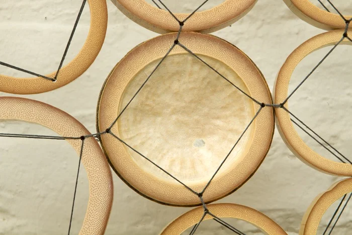 Crosscut bamboo, gold leaf, Irish waxed linen thread